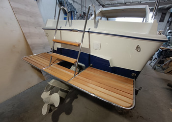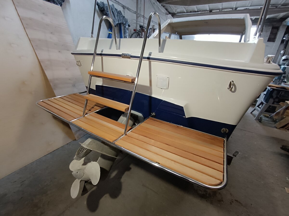 Tworzymy całość od podstaw. Na życzenie instalujemy na podeście drabinkę, pokrycie teakowe, lub gniazdo fotela dla wędkarzy.