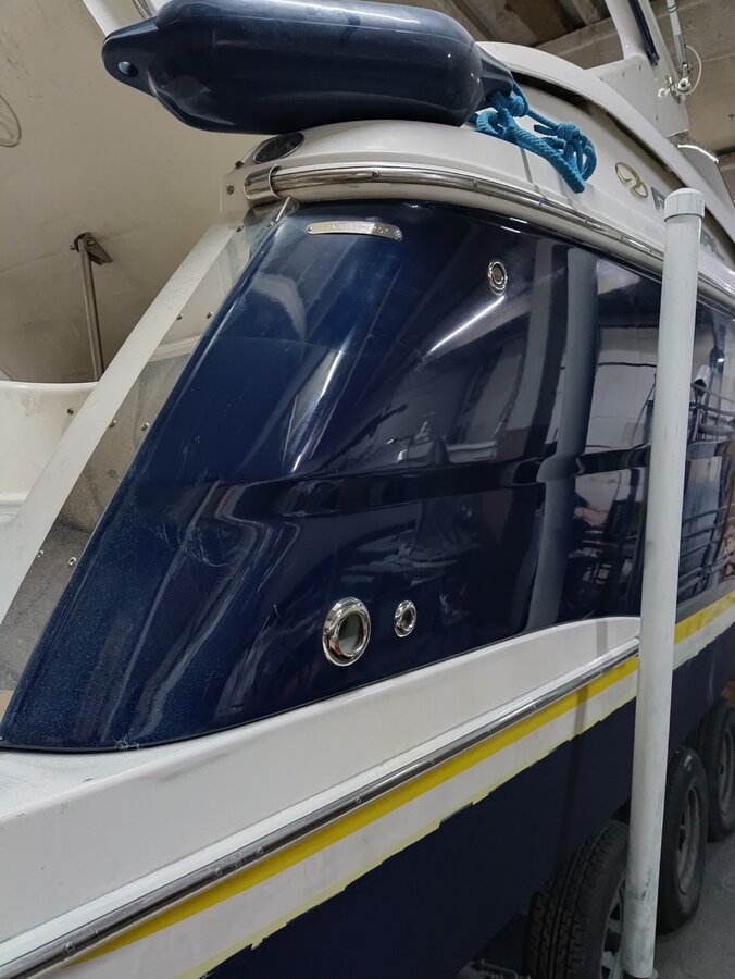 Wypalona przez słońce zmatowiała i zżółkła powłoka przyprawia nas często o ból głowy. Jacht bardzo ciężko utrzymać w czystości szybko łapie bród i każde przejście powoduje zabrudzenia. Usunięcie wierzchniej powłoki utlenionego żelkotu papierami wodnymi oraz wybłyszczenie systemem past polerskich przywraca naszej łodzi nową młodość i blask.